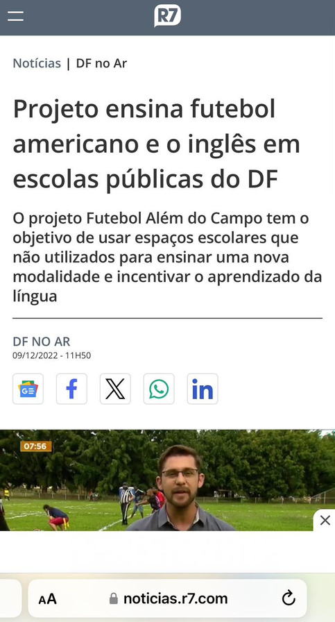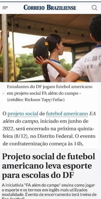 O motivo do meu contato está relacionado ao projeto social "F.A. Além do Campo". Desde que ouvi falar sobre tal, me apaixonei pela possibilidade compartilhar a minha paixão pelo futebol americano com crianças e adolescentes interessados em aprender esse esporte.